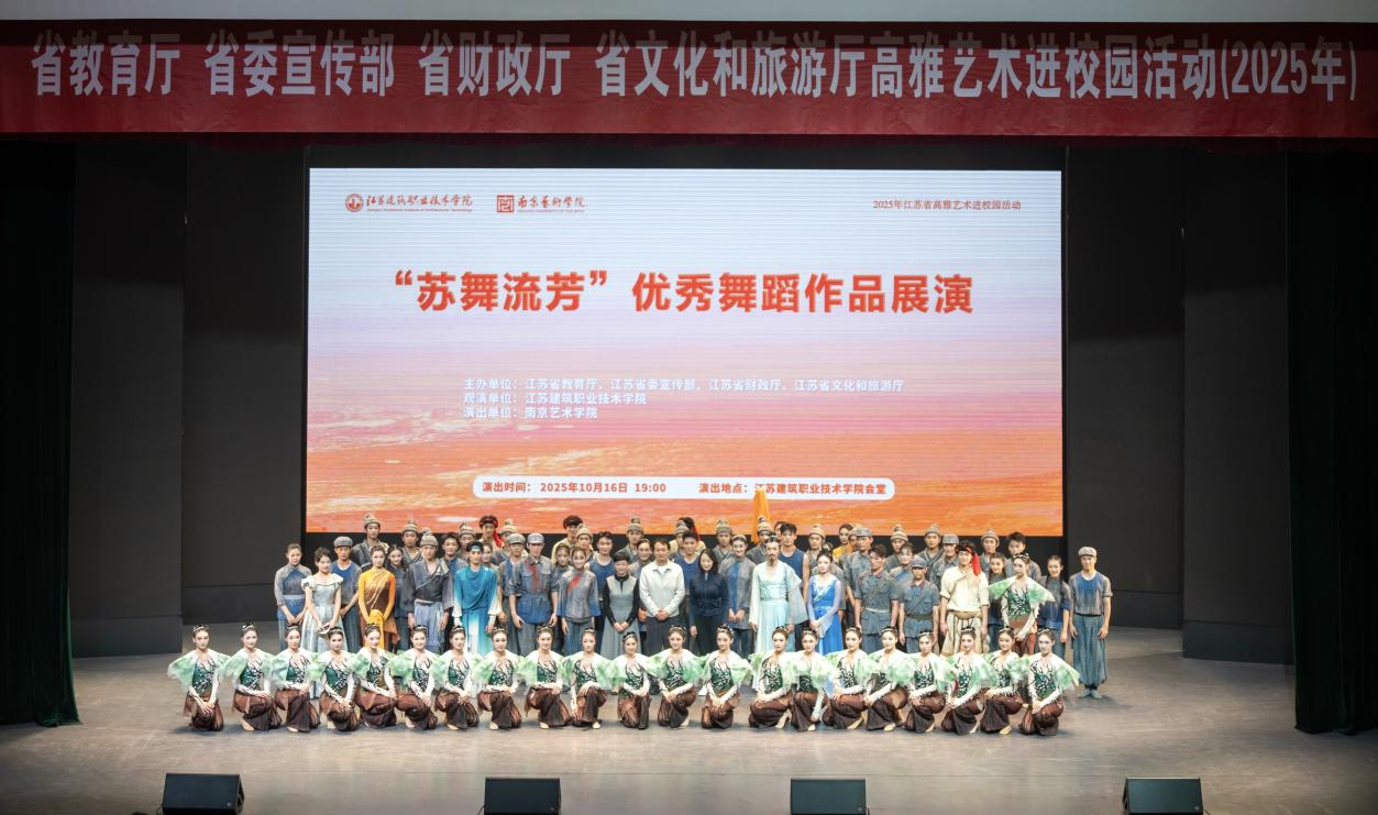 为深入学习贯彻习近平文化思想,全面落实立德树人根本任务,持续推进中华优秀传统文化在校园的创造性转化与创新性发展,10月16日晚19时,由我校厚生讲堂非遗季特别策划的2025年江苏省高雅艺术进校园活动——“苏舞流芳”优秀舞蹈作品展演在会堂精彩上演。校党委副书记梁惠,南京艺术学院舞蹈学院副院长郭罗乐,校通识教育学院院长陈昕等领导同现场千余名师生共同观赏了精彩演出。