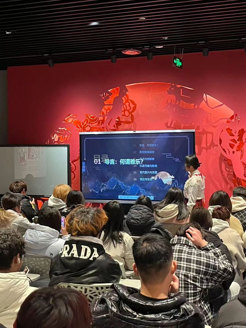 活动现场,来自筑梦合唱团和全校热爱音乐的同学齐聚一堂,通过雅乐知识讲解,乐器展示,现场演经等多元形式,深入了解雅乐的历史渊源、文化内涵与艺术特色。